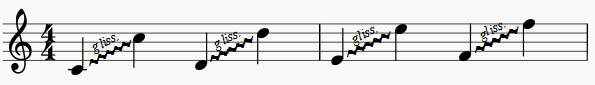 Dann versuche ich saubere Glissandi zunächst im Quint-Bereich aufwärts, dann im Oktavbereich aufwärts auf dem Mundstück auszuführen. Jedes Glissando sollte ungefähr 5 Sekunden dauern.