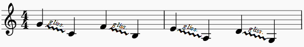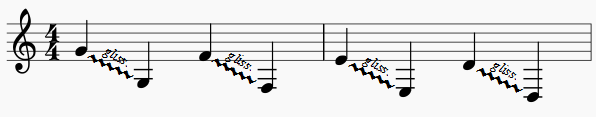 Danach die gleichen Glissandi abwärts. Beim abwärts Spielen versuche ich besonders auf einen gleichmäßigen Abstieg ohne absetzen oder umsetzen des Mundstücks zu erhalten. Achtung! Für mich sind die tiefen Töne auf dem Mundstück viel schwieriger als auf dem Horn selbst. Spielen Sie nur so tief, wie es anstrengungsfrei geht. Mit der Zeit kommt die Tiefe dann schon.